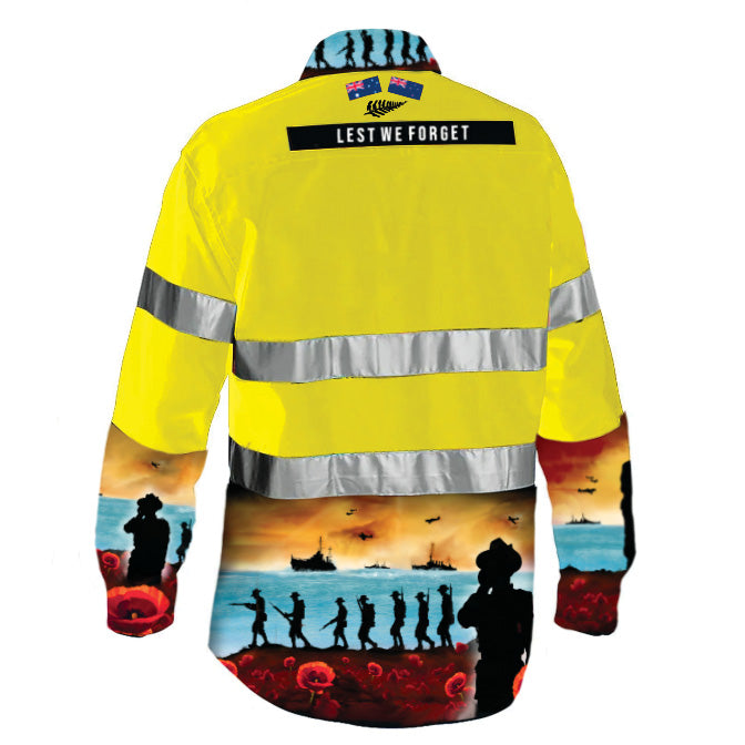 MEN'S LEST WE FORGET YELLOW DAY/NIGHT HI VIS HALF BUTTON WORKSHIRT